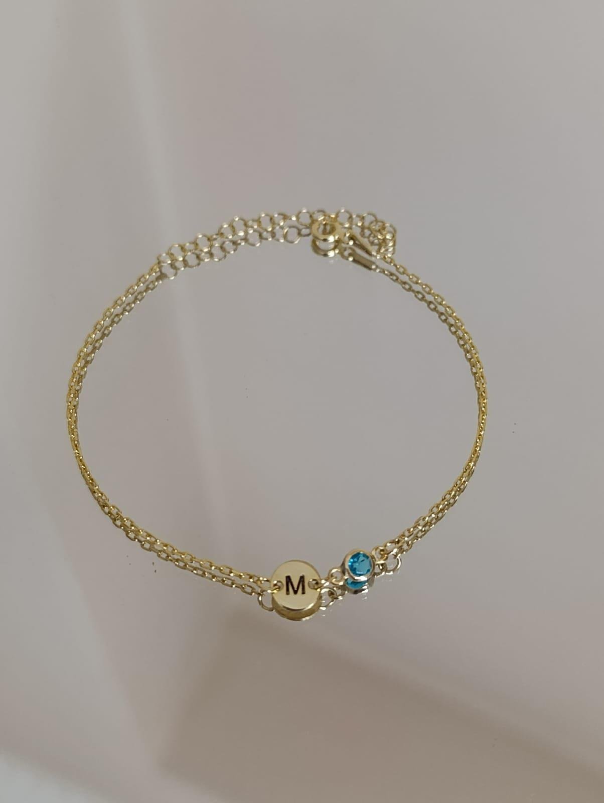 Kişiye Özel Doğum Ayı Taşlı Harfli Bileklik - 925 Ayar Gümüş