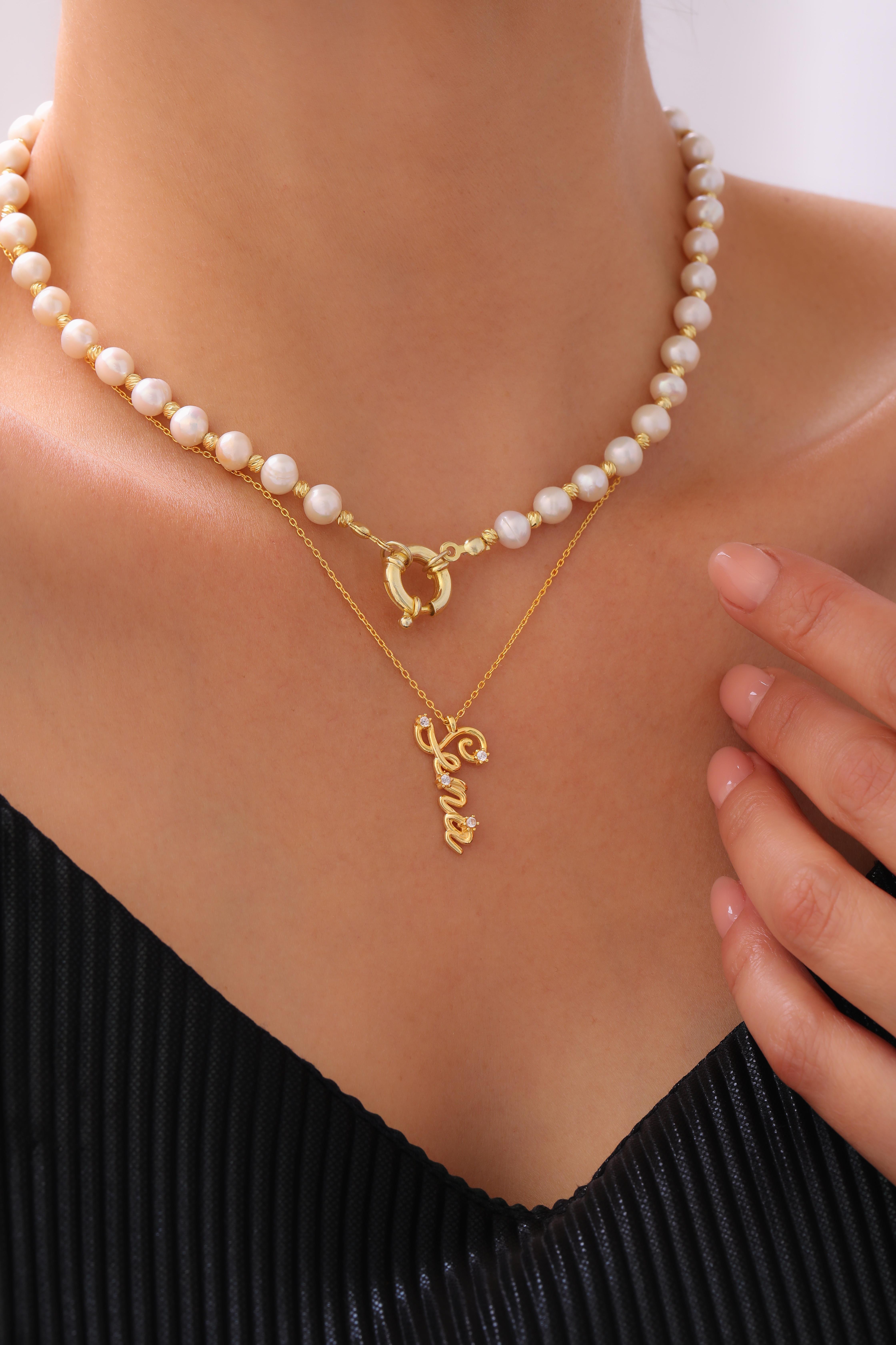 Yıldız Taş Detaylı Dikey Elyazı İsim Kolye - 925 Ayar Gümüş